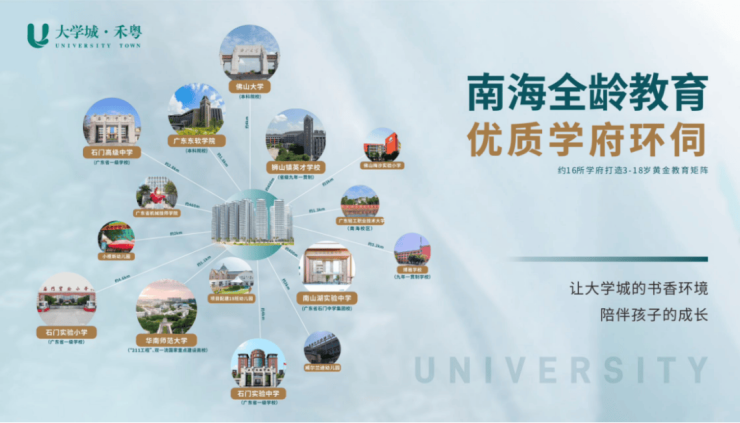 项目地处狮山大学城核心区,周边环绕华南师范大学南海校区等6所高校,在校师生近9万人,形成了浓厚的人文科创氛围,是狮山大学城人文科创带的核心区域之一。狮山镇委书记梁觉聪曾表示,南海大学城是狮山建设佛山战新产业中心的科创靠山,狮山将全力推动校际互动、校地合作、校企联动,让大学城真正为狮山产业赋能,把人才留下来、用起来。在这样的发展背景下,项目周边的人文氛围将进一步提升,成为兼具居住与人文价值的优质社区。