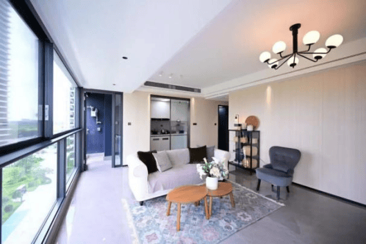 该户型带装修交付,标配中央空调、品牌厨卫、阳台封窗,装修品质有保障,省去业主装修的时间与成本,即买即住,同时70年住宅产权,民水民电,相比公寓产品,更具居住优势与性价比,无论是单身青年自住,还是作为过渡型房源,都是极具竞争力的选择。此外,该户型小巧灵活,后期置换也较为便捷,满足短期居住、长期过渡的多重需求。