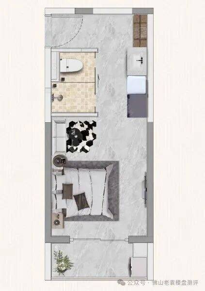 该户型是项目的入门级户型,主打“低门槛、高实用”,70年住宅产权,民水民电,性价比极高,专为单身青年、过渡型购房者打造,总价门槛极低,让预算有限的购房者也能轻松实现安家梦想。户型整体方正规整,无多余空间浪费,空间利用率极高,虽然面积不大,但功能齐全,能够满足单身人士的日常居住需求。