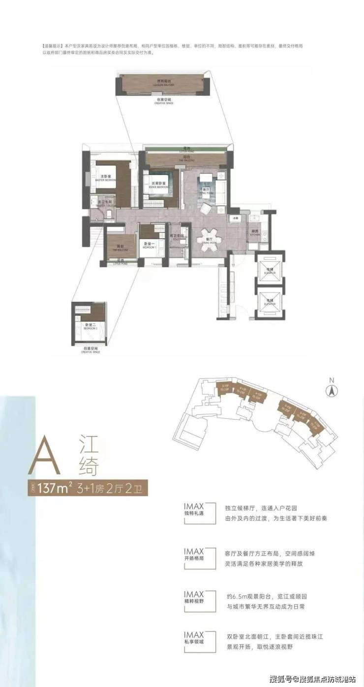 住宅:137-262㎡三至四房,层高3.1米,主卧面宽4.2米,270°环幕江景视野(实测38层北向户型可俯瞰珠江及金融城天际线);