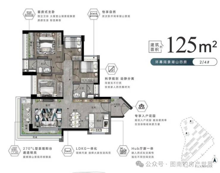 🏠高层建面约125㎡ 270度转角湖山四房