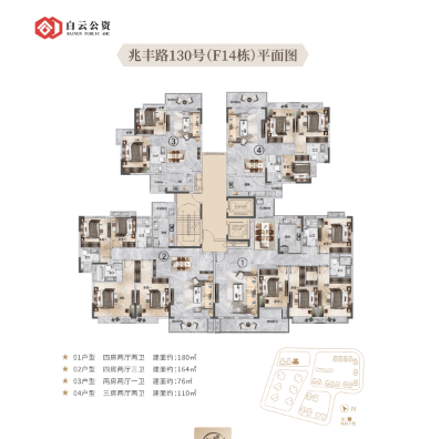 面积范围广泛:从约76平方米至180平方米不等,涵盖二房至四房多种户型,满足不同家庭需求。