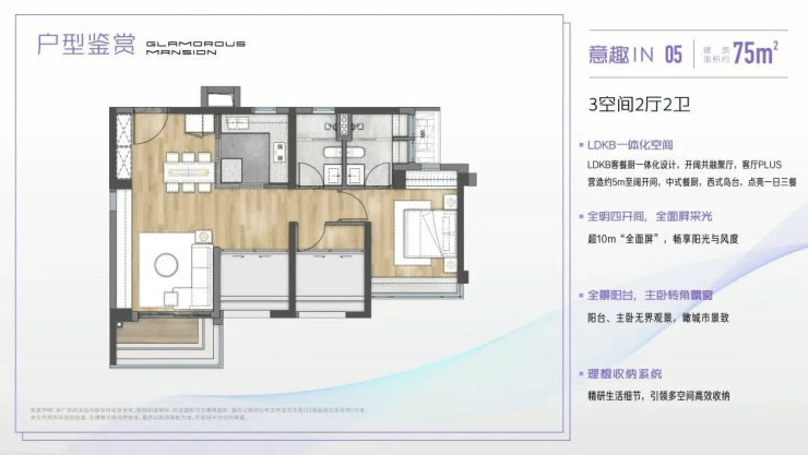 户型设计上,中海江泰里精准拿捏了刚需与改善家庭的需求,主打75㎡三房两卫、82㎡三房两卫以及105㎡四房两卫三种户型,每一款都堪称“空间利用大师”。75㎡能做到三房两卫,在海珠南向产品中实属少见,LDKB一体化布局将客厅、餐厅、厨房、阳台打通,视觉上极大延伸了公共空间,让小户型也能拥有开阔的居住感。主卧配备独立卫生间,次卧和书房靠窗布置,采光通风俱佳,玄关处的下沉式鞋柜、厨房的U型操作台、阳台的家政柜预留,每一处收纳设计都贴心周到,完美解决小户型的收纳难题。