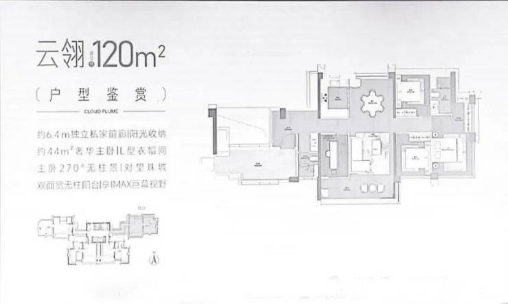120㎡边户户型:南北对流双阳台设计,主卧配置270°环幕飘窗,次卧连接空中花园阳台,实现“室内空间室外化”。