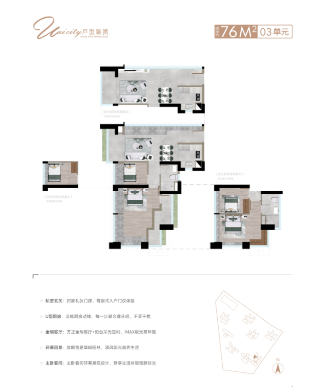 这些户型均具有超高的使用率,其中77平方米户型的使用率高达136%,堪比传统100平方米的户型。所有新规楼栋预计将于2028年10月交楼。