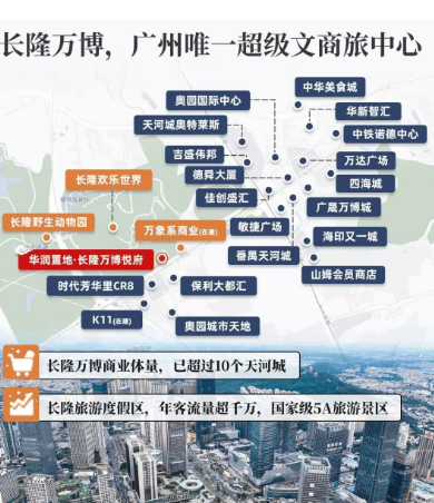 华润置地为项目配置约 24 万㎡万象商业,以 “街区 + Mall” 创新理念,打造活力欢聚的商业空间,区别于传统 “盒子式” 商业。长隆万博已开业 12 座商业体,商业体量超 10 个天河城,加上周边山姆会员店、盒马鲜生等大型高端精品超市,以及万象商业,形成多层次消费体系,满足各种消费需求,尽享繁华商业配套。