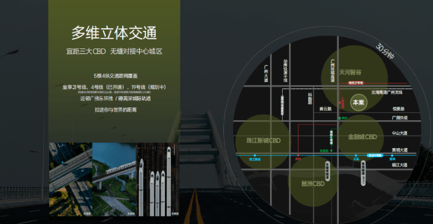 目前项目周边主要依靠悦景路出行,西接奥体路,东连珠吉路,可快速接入广园快速、大观南路及机场二高速,自驾通勤至天河智慧城(约2公里)、金融城(约5公里)较为高效。