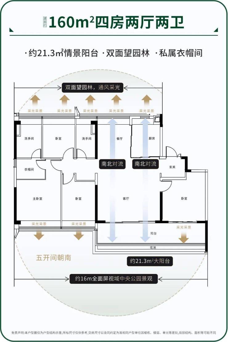 项目主力户型为110-180㎡四至五房,所有户型均为南北通透纯板楼设计,无连廊、无遮挡,确保每户采光通风最大化。