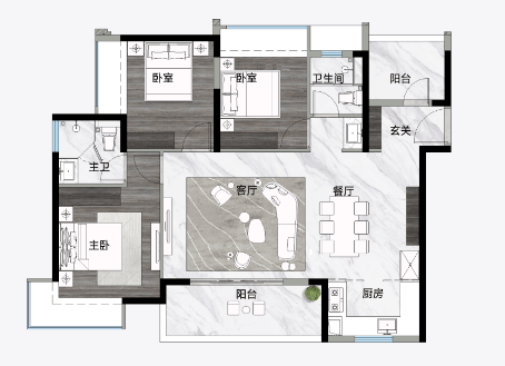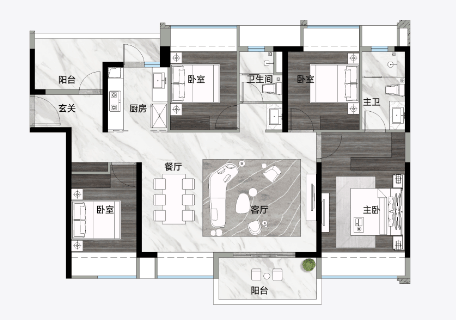 以125㎡四房为例,实用率约82%,主卧套房带独立衣帽间,次卧可改造为儿童房或书房,满足家庭全生命周期需求。