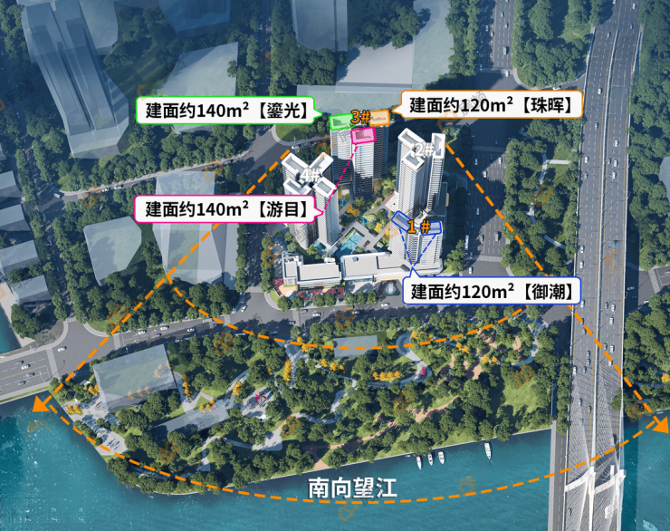 在售楼栋解析:C位楼栋,景观更佳:目前项目在售楼栋为1#、2#、3#、4#楼,其中3#楼位于项目北侧,在1#、4#楼中间,是整个项目的C位楼栋,25层高,两梯三户设计,仅在售120㎡和140㎡两种户型,该楼栋位置优越,观江视野最佳,同时远离城市主干道,噪音干扰小,居住舒适度最高,目前去化率已达78%,库存紧张;1#、2#、4#楼剩余房源相对较多,户型选择丰富,价格相对亲民,适合不同预算的购房者。