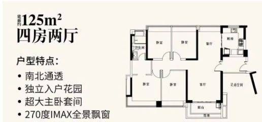 住宅户型建面71-125平方米,设计涵盖二至四房配置,主要户型特点为南北通透、双阳台配置及合理动线布局。户型内部空间利用率高,客厅、餐厅、厨房及卧室功能分区清晰,保证生活舒适性和私密性,同时适应家庭多样化生活需求。
