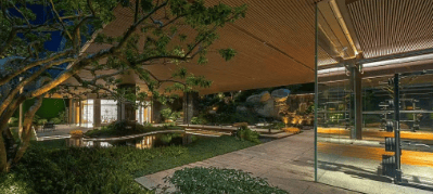 项目顺应南北地势高差,在中央打造了一个面积约1.5万平方米的大园林,并设置了榕樾山水会客厅、露天楼梯、屋顶花园等特色景观,让居民能够在繁忙的城市生活中享受到自然的美好。