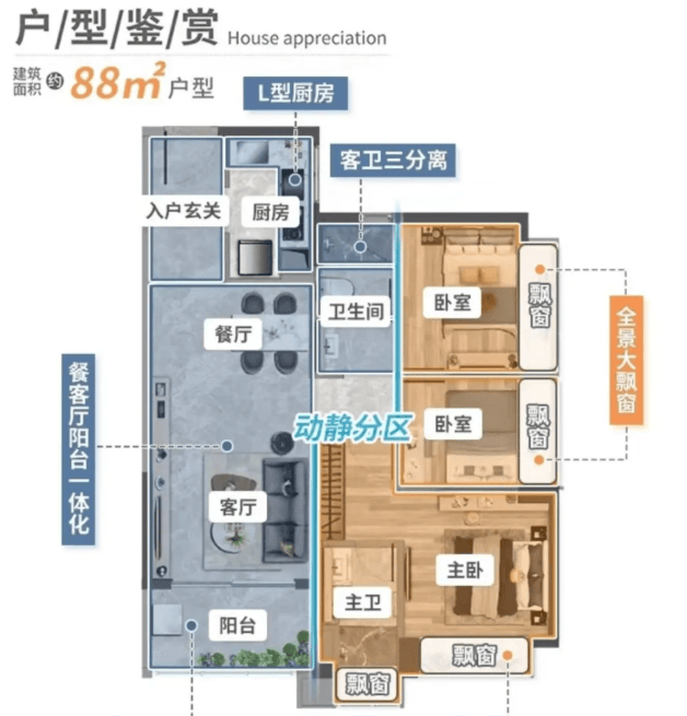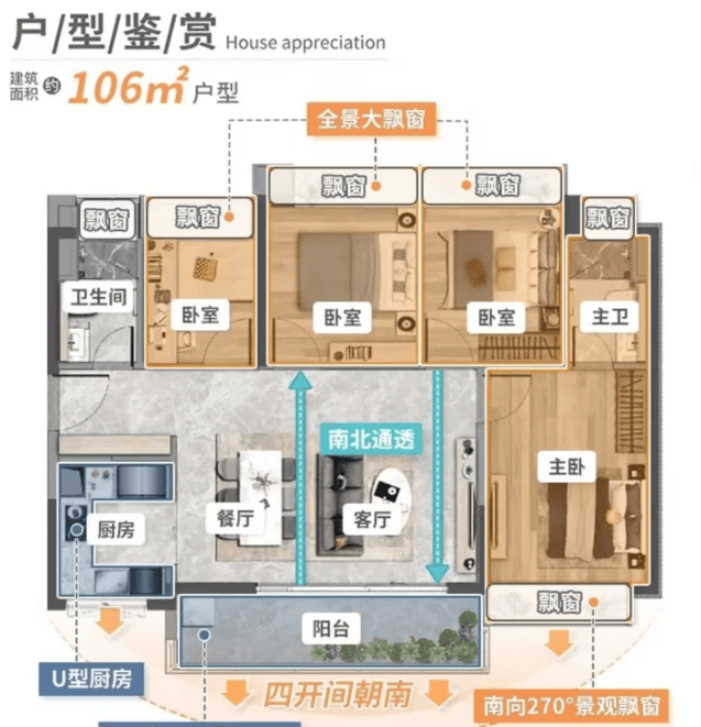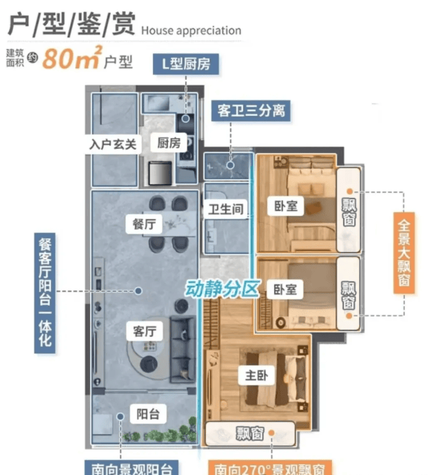 户型设计是本项目的另一大亮点。主力产品建面约80-88-106-122平方米,涵盖三至四房多种格局,精准匹配刚需、改善及多孩家庭的不同需求。所有户型均注重功能分区与空间利用率,得房率高达80%-85%,远超市场平均水平。同时,户型布局科学,采光通风俱佳,真正实现“小面积大享受”。