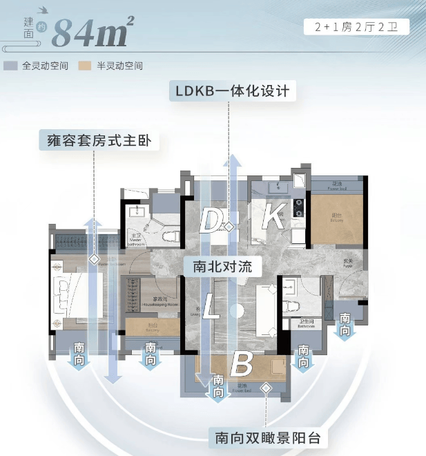 空间布局灵活,可满足二胎家庭或三代同堂需求。