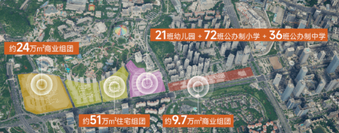 教育设施:72班小学+36班中学+21班幼儿园