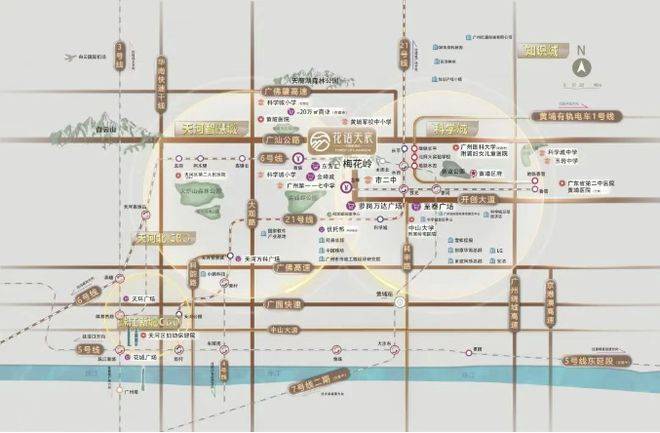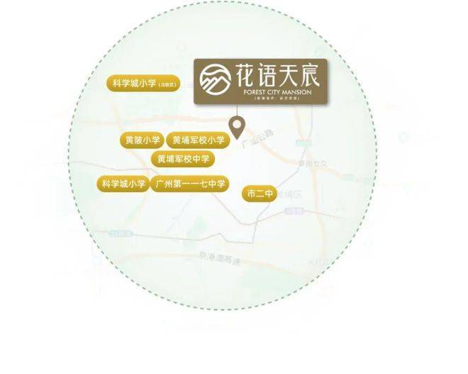 交通有其特点。项目距离黄陂站和金峰站直线都接近 1.8km,实际步行起码 2.8 公里,步行到地铁站需 30 分钟以上,不能算传统意义的地铁盘。不过,项目周边高速路网多维立体,北面紧靠广汕路,通过 “五横三纵” 的广园快速、广佛肇高速等路网,自驾能畅达中心城区。整体交通还是不错的,弊端是去地铁站需其他交通工具接驳,但去往各区中心基本能控制在 1 小时内,通勤科学城和智慧城自驾在不堵车情况下 40 分钟内可达,对于有车一族来说出行较为便利。