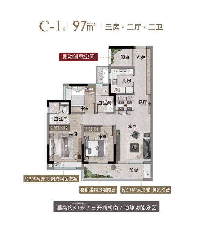 目前在售楼栋有 1 - 5 - 6 - 9 栋 。1/5 栋有 97 - 118 - 137 方户型;6 栋是 142 方户型(两种户型),两梯 3 户;9 栋为 168 方户型(两种户型),两梯 2 户。户型设计具备高端住宅基因体系,采用 LDK 一体化设计,空间布局合理,约 3.1 米层高,约 6.1 - 9.4 米宽景阳台,采光通风极佳。片区最高装修标准,定制国际品牌六大精装系统,智能化与人性化兼备。超大幕墙比例,外立面堪比汇悦台的前沿 “钻铂” 风格,不仅提升了居住舒适度,还在一定程度上提高了得房率,为业主提供了高品质的居住空间。