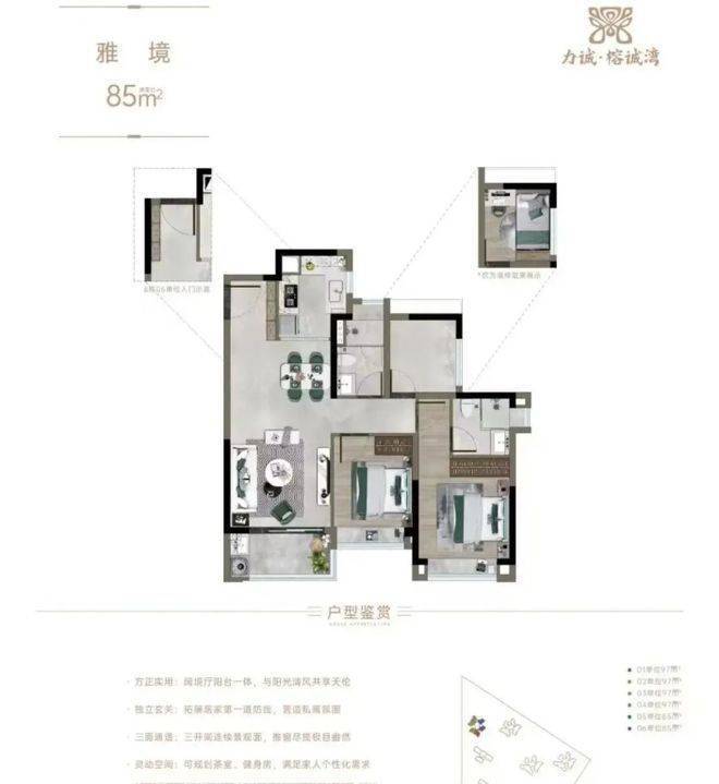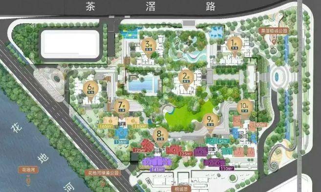 户型设计多样,涵盖 77 - 165㎡多种面积段,满足不同家庭结构的需求。从温馨的两居室到宽敞的四居室,无论是新婚夫妇、三口之家,还是三代同堂的大家庭,都能找到合适的户型。得房率达 85 - 87%,且使用率超 100%,空间利用充分,提升居住舒适度。虽未详细描述内部空间布局,但从项目整体定位来看,户型方正实用,部分户型头排无遮挡南向瞰花地河,景观视野极佳。