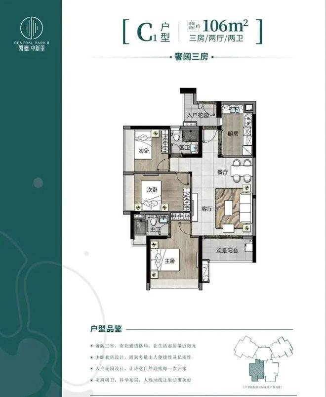 由凯德集团打造,品质值得信赖。项目占地面积约 58400㎡ ,建筑面积约 116900㎡ ,规模适中。总栋数 9 栋,总户数 1055 户,总楼层 24 - 26 层高层住宅,楼层高 3 米 ,梯户比 2 梯 4 户 / 2 梯 6 户 ,容积率 2 ,绿化率约 39.1% ,得房率 85% ,总停车位总计 1439 个,车位比 1:1.3 。