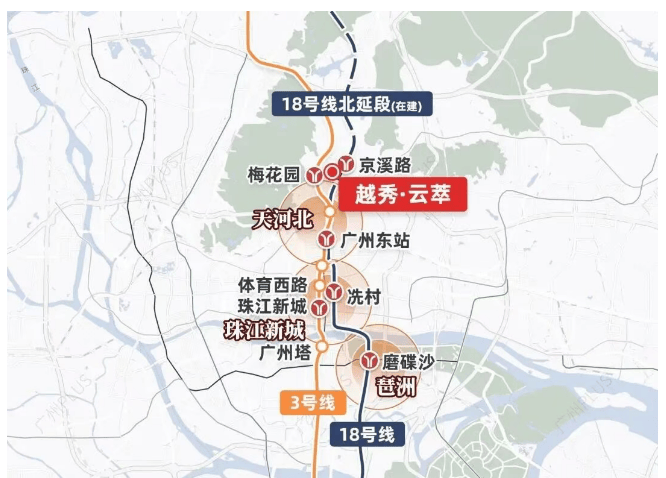 通勤效率,是衡量一个楼盘价值的关键指标。越秀·云萃坐拥“双地铁”配置:家门口即18号线京溪路站(在建),未来可一线直达琶洲、珠江新城、天河北、万博等核心商务区,全程无需换乘;步行约800-900米即达3号线梅花园站,30分钟内轻松覆盖体育西路、珠江新城等传统黄金商圈。自驾方面,经沙太路或广州大道,15分钟内可抵达珠江新城核心区。这种“轨道+主干道”双维交通网络,不仅极大缩短了通勤时间,更让业主在工作与生活之间实现高效切换。对于依赖CBD就业但预算有限的家庭而言,云萃提供了极具性价比的“职住平衡”解决方案。
