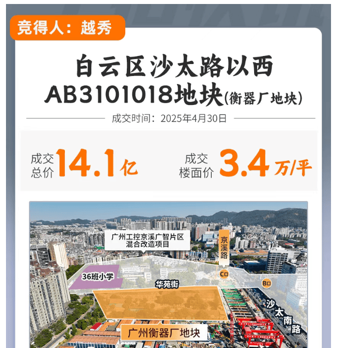 在广州楼市版图中,“中轴线”向来是价值高地的代名词。越秀·云萃落子白云沙太路以西,直线距离珠江新城仅约5公里,真正意义上实现了“白云价格、天河配套”。这一区位不仅承接了珠江新城外溢的高端改善需求,更因紧邻京溪板块成熟生活圈而自带烟火气。尤其值得关注的是,项目所在地块——原衡器厂旧址,在2025年4月30日土拍中引发9家头部房企围猎,最终由越秀地产以14.15亿元竞得,折合可售楼面价约3.8万元/㎡,足见市场对其地段价值的高度认可。不同于白云多数边缘板块,云萃身处城市脊梁之上,既享CBD辐射红利,又避开了核心区高昂门槛,堪称“进可攻、退可守”的理想人居选择。