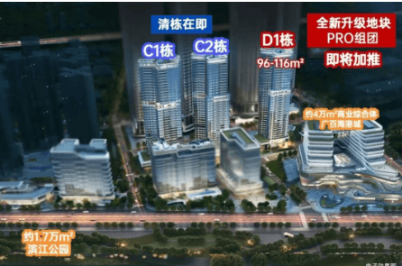 🏗️ 低密滨江社区:总建面18万㎡,容积率仅3.2,由12栋17-25层小高层组成,户户南向观江。