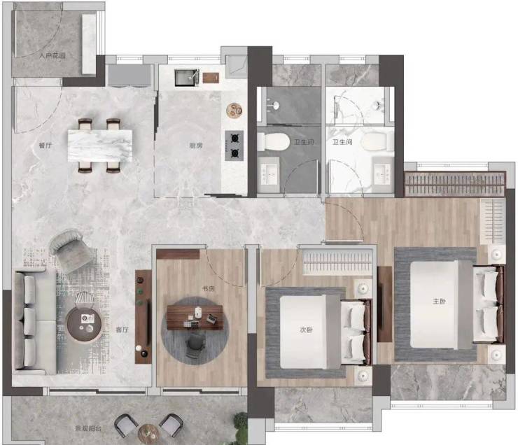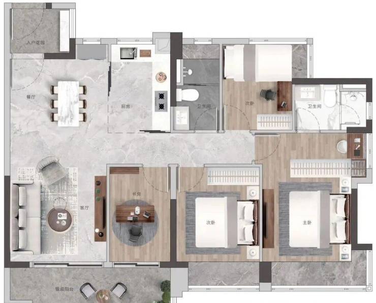 高配双主套三卫,书房可作主卧延展空间,打造总统级套房