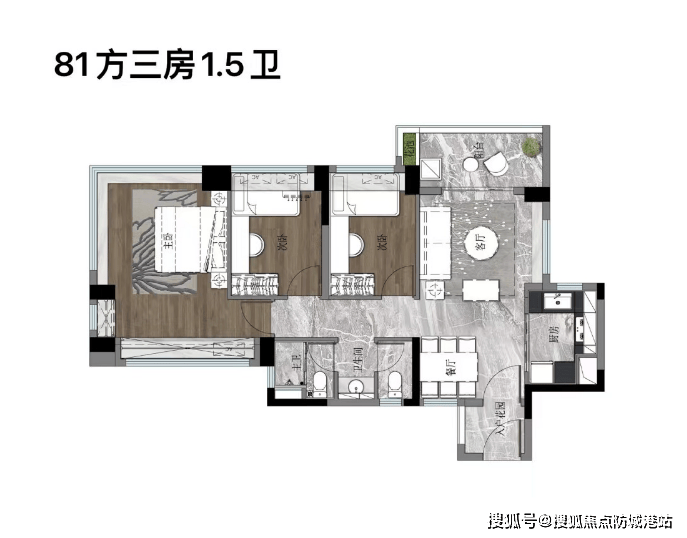 81㎡三房1.5卫:总价260万起,大沙东独一档上车户型,对比竞品(城光、中鼎同预算只能买两房),性价比突出;