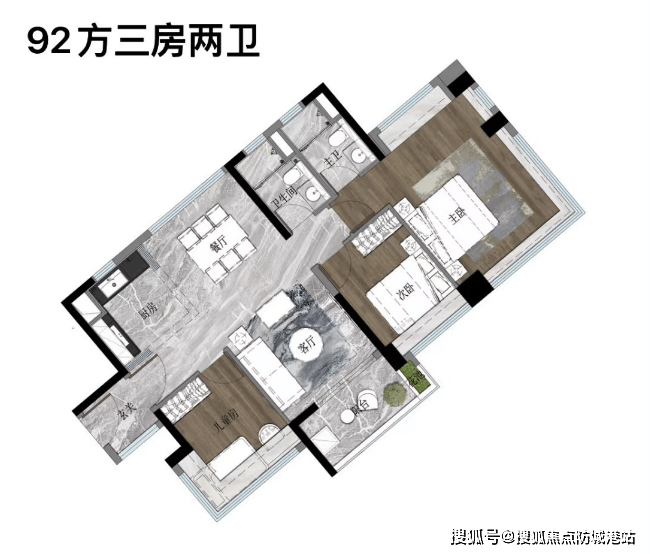 89-92㎡三房两卫:总价350万起,4开间朝南,主卧套房设计,功能性完胜二手次新房;