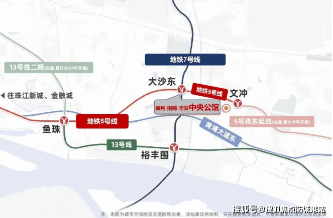 保利中央公馆占据老黄埔核心区,步行500米直达地铁5/7号线大沙东站,3站直达天河金融城,10站通达珠江新城,7号线二期(2025年底开通)直通大学城、科学城,通勤效率提升50%。自驾方面,毗邻黄埔大道、中山大道、广园快速三条城市主干道,经黄埔大道至天河体育中心实测车程22分钟,广园快速至白云机场车程45分钟。