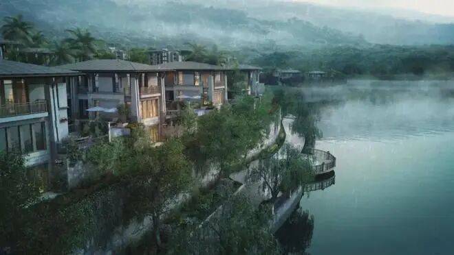 产品设计充分利用湖山景观资源,户户拥有观景视角,合院产品配备私家庭院,联排产品拥有多重空间布局。户型设计方正实用,空间利用率高,动静分区合理,满足家庭全周期居住需求。项目建筑风格融合现代美学与岭南特色,外观大气典雅,与周边自然生态和谐相融。