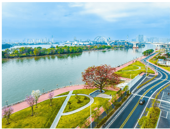 项目虽体量精巧,却通过“垂直绿化+立体社区”理念打造高密度下的低密体验。规划包括屋顶花园、平台绿廊、立体绿化墙面等多层次生态体系,绿化率20.29%,配合两地块间的天梯连廊,形成立体漫游动线。社区内还配建少年宫、露天泳池、社区服务中心等十余项公建配套,丰富业主精神文化生活。外部环境更是一大王牌——200米直达珠江后航道南向江岸,沿江设有儿童乐园、垂钓区、露营草坪及环江健身步道,1.7万㎡滨江公园成为天然后花园。未来随着海珠创新湾整体开发推进,沿江将形成连续滨水活力带,项目恰处核心节点,坐享“城市客厅”级公共空间,真正实现“出则繁华,入则宁静”的理想栖居。