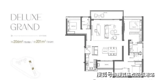 在售产品:142㎡、188㎡、201㎡、206㎡精装大平层(3 梯 2 户,高端配置)