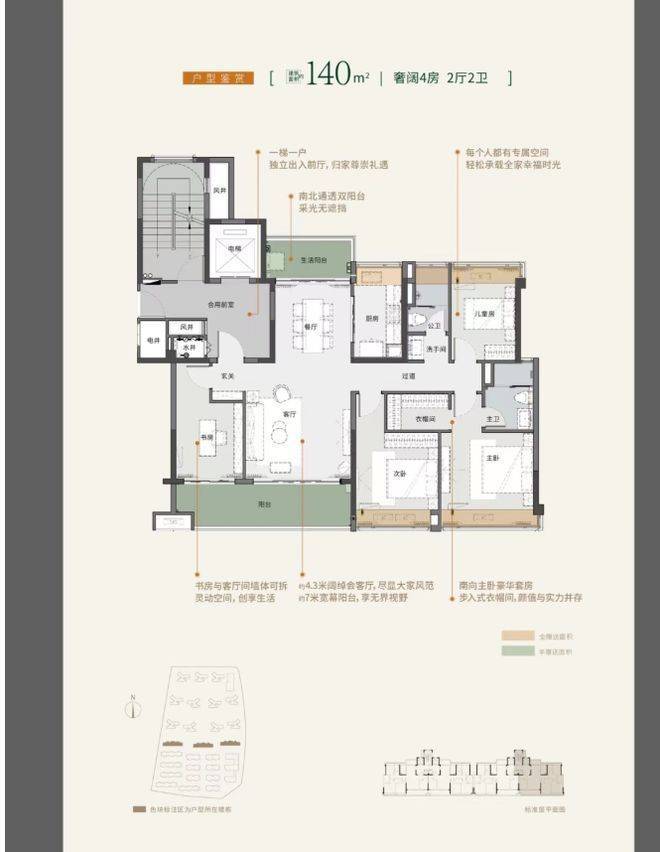 140㎡专梯专户户型(12 座):这一户型专为追求高品质与高私密性的家庭打造。专梯专户设计,保证了业主生活的专属感与私密性。四房两厅两卫的格局,空间开阔,功能齐全。客厅与餐厅一体化设计,营造出宽敞大气的公共活动区域,无论是家庭聚会还是宴请宾客,都能轻松应对。四个卧室布局合理,动静分区,互不干扰。主卧空间豪华,独立卫生间、衣帽间一应俱全,给予主人尊贵的居住体验。次卧和其他房间尺度宽敞,可根据家庭成员特点进行个性化规划,如打造老人房、儿童房、书房或健身房等,满足家庭全生命周期不同阶段的需求。同时,该户型可能还配备了更大的阳台或露台,提供更多的休闲空间,可用于种植花草、摆放休闲桌椅,享受惬意的户外时光。