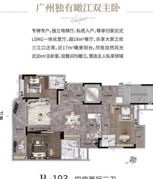 兰园・金桥地块二期,傲踞荔湾区白鹅潭 CBD 核心地带,与星河江缦相邻,尽享区域发展红利。作为备受瞩目的项目,其天花板级别的交标彰显着无与伦比的品质。由兰园控股精心打造,虽品牌影响力有待提升,但却以独特的优势在众多楼盘中脱颖而出。稀缺的江景资源,让业主北向望江,距珠江仅约 90 米,拥有 400 米宽的壮阔江景,且地处三江交汇处,景观壮美,堪称广州一线江景豪宅的典范。高端的产品定位,大平层户型设计,专梯入户,配备 270° 环幕观江阳台、瞰江双主卧等,空间尺度感强,室内采用嘉格纳、高仪等一线国际品牌装修,为追求高品质生活的人士提供极致居住体验。加之纯粹的圈层氛围,仅规划一栋 18 层建筑,共 68 户,周边亦为豪宅项目,让居住更显尊贵。无论是自住享受奢华生活,还是投资期待资产增值,都极具价值。