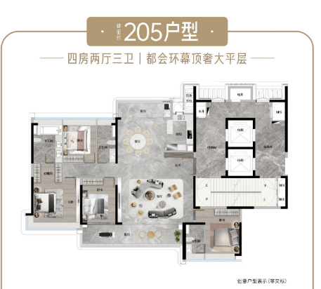 目前在售 140 - 253 平南向板式住宅,涵盖四至五房。如 140a㎡高定四房景观视野佳,板式布局南北对流;140b㎡高定四房北瞰园林南望校园,实用率高;171㎡奢适五房享长隆头排景观,专梯入户;205㎡奢适四房为中轴园林环幕景观楼王,双主卧套房设计;253㎡定奢五房同样为楼王位置,拥有约 10.3 米宽巨幕阳台等奢华配置。且七大高品质超感精工对标宝格丽酒店,携手德系一线国际品牌,打造高定奢宅。
