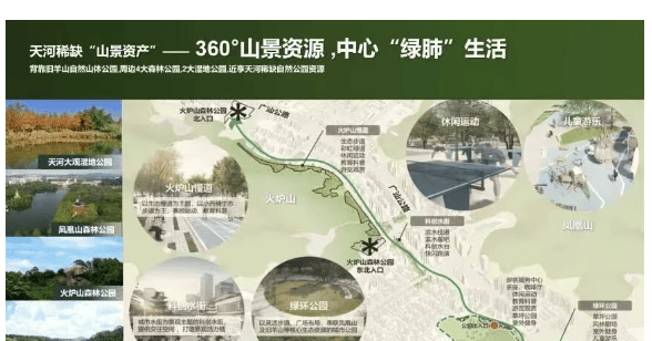 绿化率:约35%,项目打造了约2万㎡的中心园林,结合80万㎡旧羊山公园、火炉山、凤凰山,形成“山、林、园”三位一体的生态格局;
