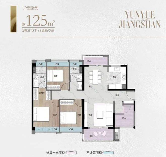125㎡四房两厅两卫:这款户型专为追求舒适与品质的家庭打造。南北对流的设计,使室内空气流通顺畅,保持舒适的居住环境。可俯瞰池园美景,让业主在家中就能享受园林景观带来的愉悦。约 4.7 米南向景观阳台,增加采光通风,同时可作为休闲空间,欣赏小区美景。四房两厅两卫的布局,功能分区明确,客厅与餐厅相连,形成宽敞的公共活动区域。主卧空间阔绰,配备独立卫生间和衣帽间,为主人提供专属的舒适空间。次卧和其他房间尺度适宜,可根据家庭成员需求进行个性化装修,如打造书房、健身房等。整体户型设计合理,空间利用充分,为家庭提供高品质的居住体验。