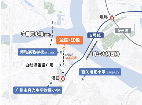 项目地处白鹅潭 CBD 核心,紧邻 5 号线滘口地铁站(约 1 公里),30 分钟直达珠江新城,轻松串联天河、越秀等核心商圈。周边交通网络持续升级,规划中的广佛同心桥可直通佛山,白鹅潭大道未来将连接广船、医药港等板块,自驾经芳村大道 10 分钟可达白鹅潭 CBD 腹地,如意坊隧道通车后,10 分钟内可从内环路接驳广珠西线,融入大湾区 1 小时生活圈,无论是通勤还是跨城出行都高效便捷。