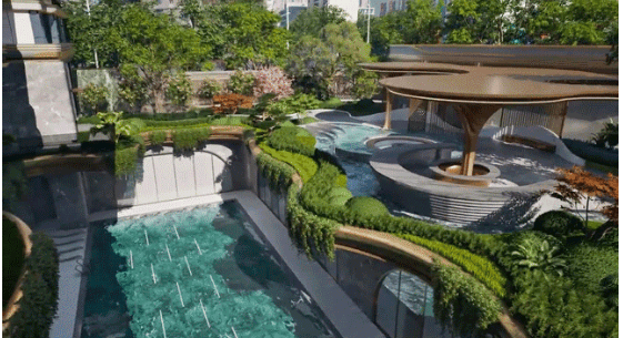 项目自带超 1600㎡五星级酒店式双会所,首层会所面积超 300㎡(层高 5.5 米),地面通铺高登灰天然大理石,背景墙与立柱采用意大利鱼肚白大理石,吧台墙面为编制造型皮革,搭配 10 米超白玻落地玻璃幕墙,直面园林景观;负一层会所规划 25 米长泳池(普拉达绿大理石通铺),配备男女独立更衣室、淋浴间及露天阳光躺椅,对标五星级酒店。地下停车场同样奢华,墙面柱体铺鱼肚白大理石,地面舍弃地坪漆用天然大理石,天花为劳斯莱斯星空顶,归家仪式感拉满。