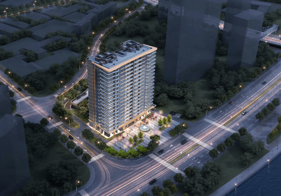 项目总占地面积约 1.4 万㎡,总建筑面积约 2.7 万㎡,容积率仅 2.68(远低于同板块超高层项目),绿地率 40%,规划 1 栋 18 层住宅,总户数仅 68 户,圈层纯粹性拉满。建筑由亚太顶级汇张思大师团队设计,取意 “珠江之帆”,采用大量圆弧线条与高定 LOW-E 全玻璃幕墙(可见光透射率 92%,隔声性能提升 30%),搭配香槟金色金属铝板,现代质感与江景自然交融。物业服务由兰雅物业主导,聘请本地老牌天力物业(服务超 200 万客户)作为顾问,提供五星级专属服务。