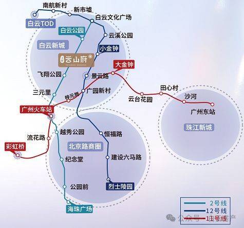 交通层面,项目周边形成多轨交汇格局。已开通的地铁2号线飞翔公园站、白云公园站分别约1公里及1.2公里范围内,便捷连接广州火车站、北京路等核心商圈。地铁12号线小金钟站距离约400米,未来将强化白云新城与棠溪火车站、大学城等板块的联系。多维交通网络为居住与通勤提供高效支撑。