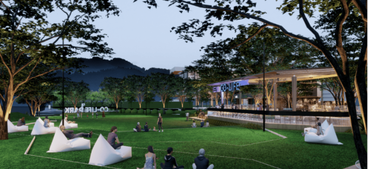 檐屿城在占地七万七千多平米的空间内合理布局九栋住宅,保证低密度与舒适居住体验。社区内部设计了岭南雅奢美学门楼和檐下生活商业街区,结合1300平米社交草坪及步行景观道,营造自然、松弛、精致的生活氛围。滨河景观及绿化栈道与社区公共空间相连,形成开放式生态环境。低密度布局和生态园林设计不仅提升居住舒适感,也为居民提供安全、休闲和社交空间,兼顾生活便利和自然享受。