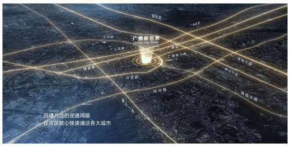 广佛新世界落子佛山南海狮山镇大浩湖畔,正处广佛同城化发展的黄金交汇点。这里不仅是佛山西站枢纽新城的重要组成部分,更是粤港澳大湾区向西辐射的关键门户。项目北接广三高速,南连佛山一环西线,15分钟车程直达千灯湖金融高新区,30分钟无缝衔接广州珠江新城核心圈。随着广佛全域同城化战略深入推进,该区域已从“边缘地带”跃升为“价值高地”。尤其在佛山“西进”城市发展战略加持下,狮山片区正加速承接广州外溢的高端居住与产业资源,区位优势日益凸显。