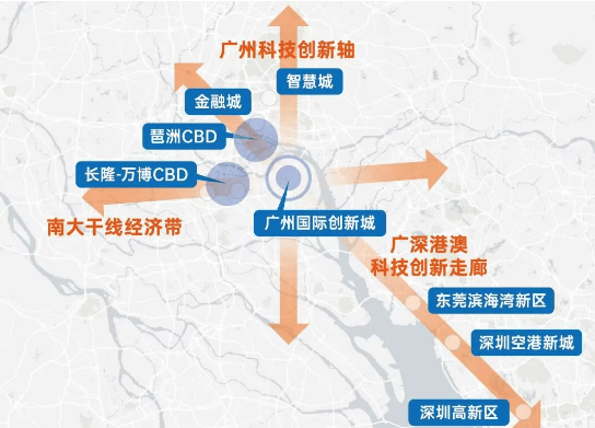 项目地处南大干线经济带上的番禺黄金财智走廊,这一地理位置更是得天独厚。南大干线作为粤港澳大湾区横向交通的重要动脉,往西与佛山衔接,往东与东莞相连,往南连接南沙,更串联了广州南站、长隆万博、国际创新城以及汽车城板块等番禺多个关键经济平台,成为连接珠三角东西岸的重要发展走廊,也为项目带来了强劲的发展潜力。