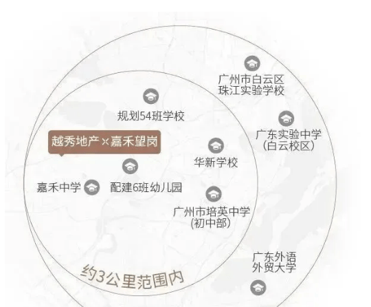 在中小学教育方面,项目附近的012地块规划建设一所54班九年一贯制学校,涵盖小学与初中两个阶段,与项目距离极近,步行5分钟内即可到达,真正实现“目送式教育”。参考越秀地产在白云区域的其他项目,该九年一贯制学校有望引入培英系等优质教育资源,配备优秀的师资团队与先进的教学设备,为业主子女提供高质量的义务教育,助力孩子夯实学习基础,顺利升入优质高中。