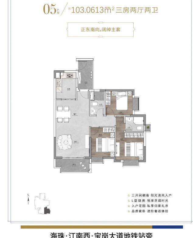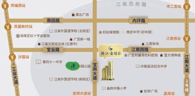 项目位于宝岗大道(海珠三大黄金走廊之一),处于江南大道和工业大道之间的核心位置,驾车 18 分钟就能到珠江新城,无论是日常通勤还是外出远行,交通便利性都极高,轻松畅达城市各处。