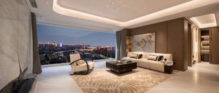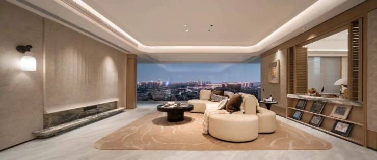 约18.9米巨幕面宽、四南向开间,更有南向双套房,其中约38㎡总统级套房带有浴缸。