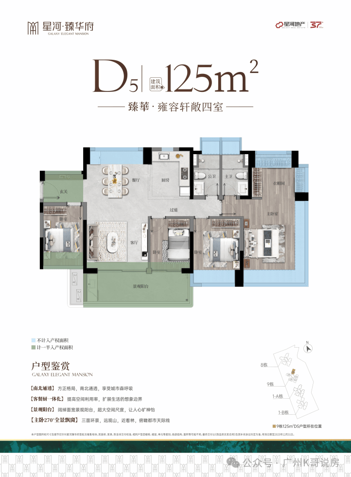 约125㎡四房,分布在9号楼。