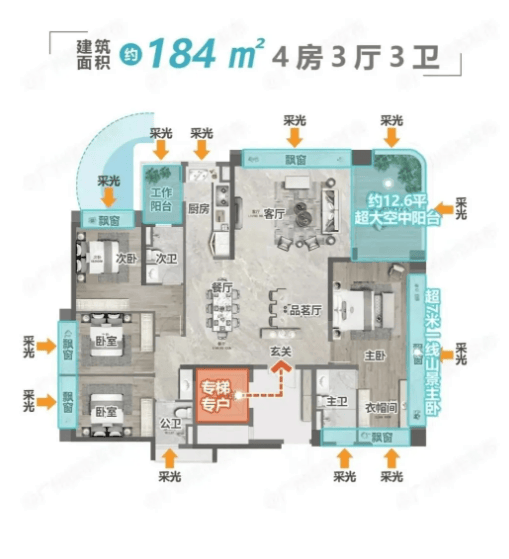 建面约217-218㎡户型,规划5室2厅3卫,适合多人口家庭居住,空间宽敞明亮,3.25米墅级层高让室内更显通透大气;梯户比为三梯三户,出行便捷,私密性强;客厅采用大面宽设计,搭配全景落地窗,40%窗地比让室内采光充足,推窗即揽山景园林;次卧均为大尺度设计,可根据需求改造为儿童房、书房、客房等,灵活性强。建面约230-300㎡大平层,定位高端改善,规划5室2厅4卫及以上,采用豪华装修标准,配备超大空中花园、独立电梯入户、中西双厨等特色设计,部分户型预留茶室、影音室空间,满足高端家庭的居住品质需求,尽显尊贵格调。